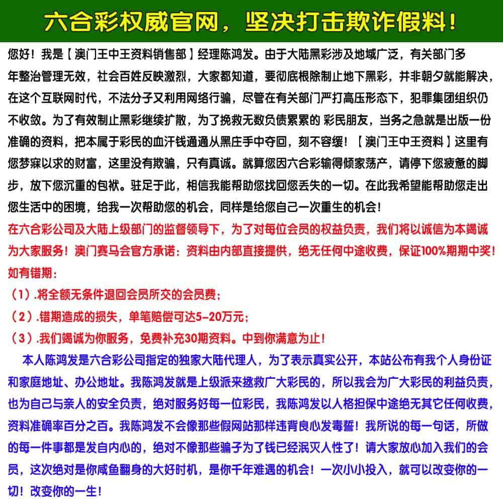 发表于43天前 陈总你好,打扰你不好意思了,我实在是输了好多钱了,没脸面对家人。跟综你资料几期了,都是我亲眼所看见的,真真实实的资料,今天我决定加入陈总的会员赚钱,我已经在微信上给你转了798元,您好,我今天加入你的会员,今晚跟着你赚钱,希望在后面的日子里,我们的合作可以顺风顺水,看到那么多的彩民都跟你赚了钱,我也想跟你发财,我以前也买过不少的资料,都是假资料,都是骗人的,所以,最后的希望放在你陈总身上了,你一定得帮帮我! |