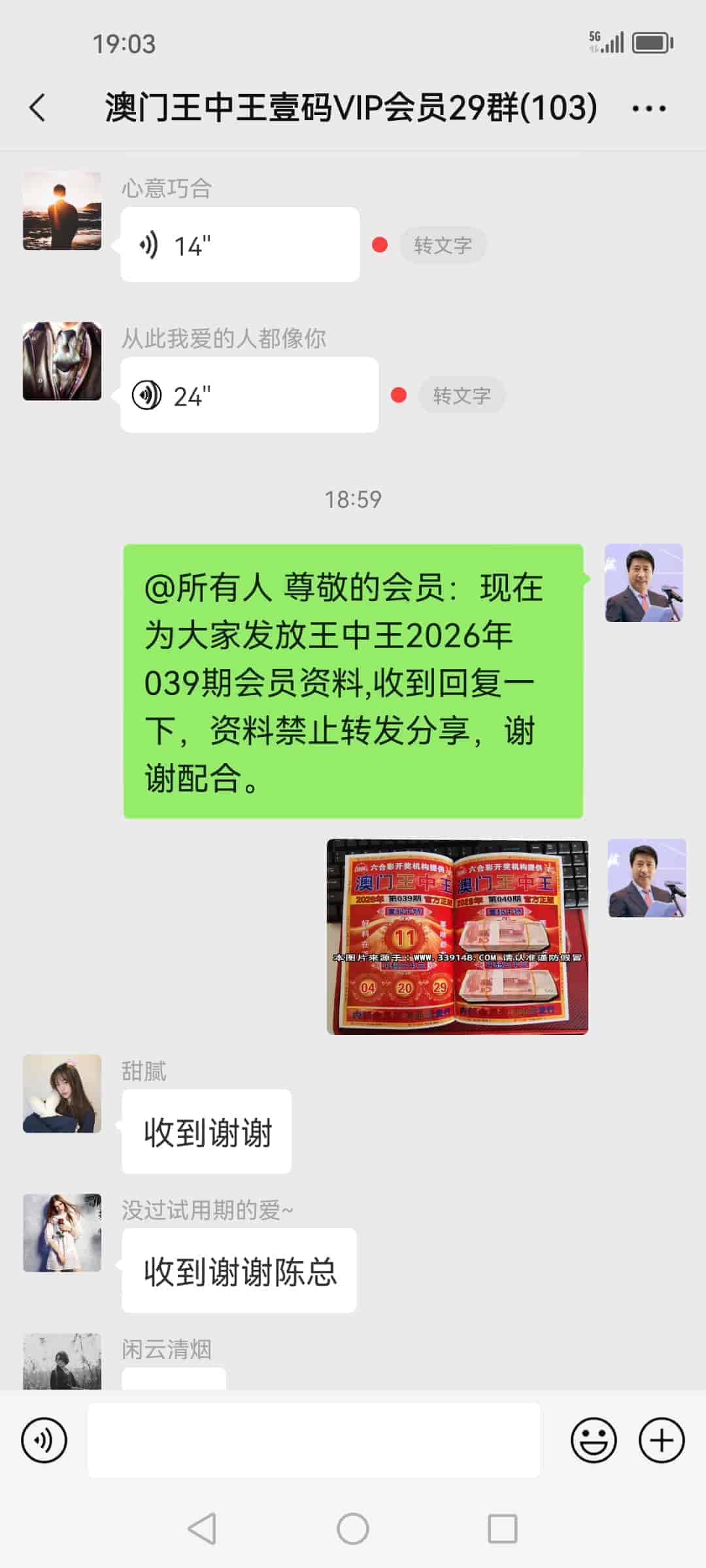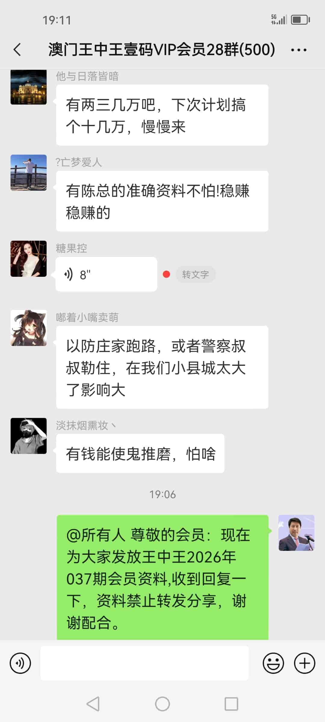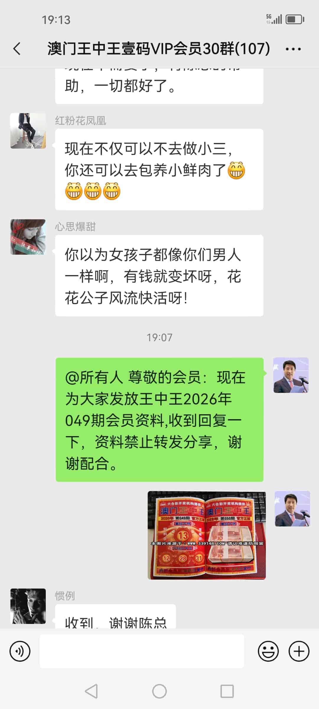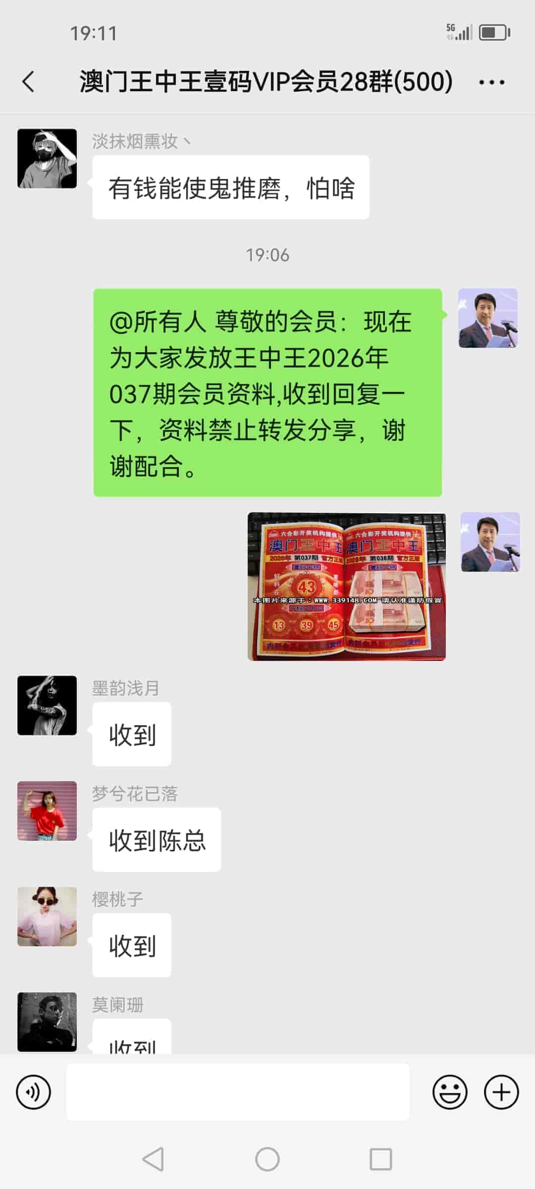 发表于40天前 陈总,我领到昨晚中的钱了,两个庄家赔的都是现金十多万,其他两个庄家是微信转账的,刚刚给陈总转了16800的辛苦费,陈总辛苦了,谢谢您的一码三中三改变了我的人生,说句不怕您见笑的话,我一辈子都没见过这么多钱。 |