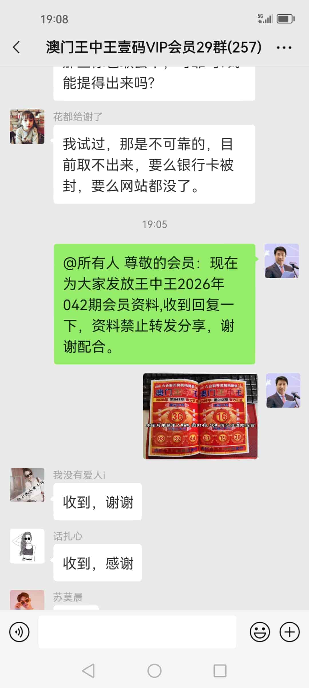 发表于9天前 陈总你好,今天无意间在网上看资料看到你的网站,网站上说可以验证所以我今晚就特地来你的网站上看,看到了你资料跟开奖的号码是一样的,刚刚我加了你的微信了,明天我去银行给你把798的会员费转过去,上了年纪不懂网上支付,明天我转好了发微信给你,麻烦陈总了。 |