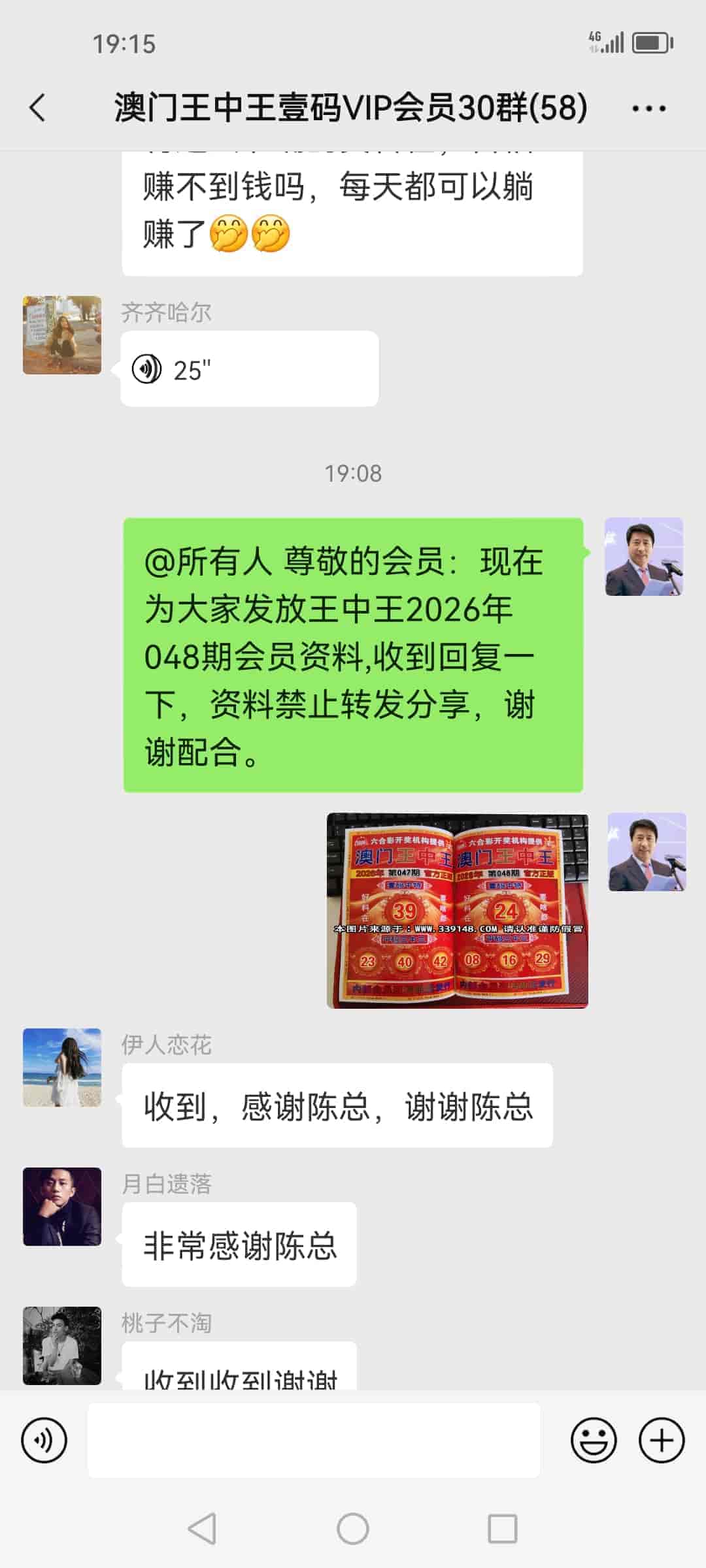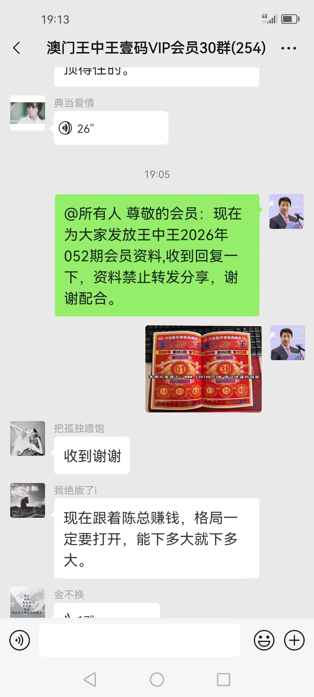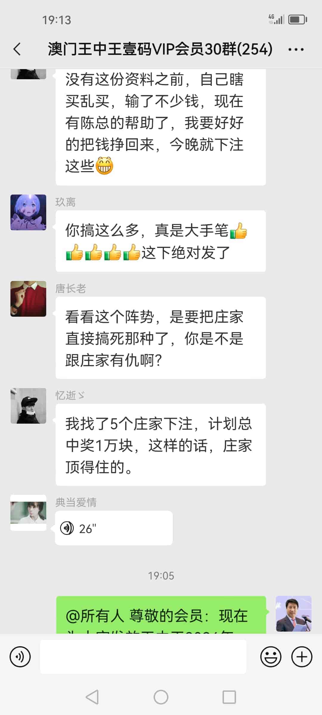 发表于18天前 陈总你的的资料真的太准了,遇到你真的是遇到我人生中的贵人了,明天我去庄家哪里拿到钱给你发两万红包感谢你。 |