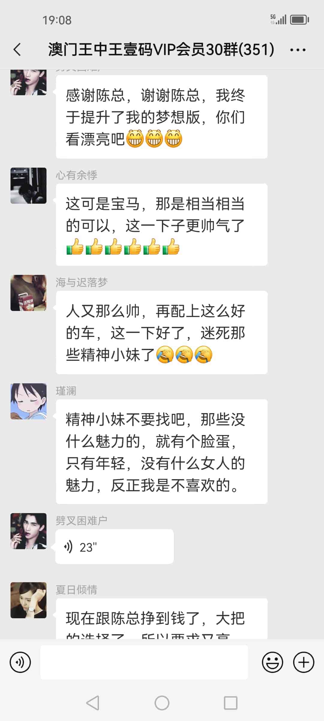 发表于35天前 陈总下午好,今天全款买了人生中的第一辆车,真的很开心迫不及待的想跟你分享一下这份喜悦,一个多月前我还是一个一无所有的打工仔,现在不但有几百万的存款还买了宝马真的觉得这一切是在做梦。感谢陈总。 |